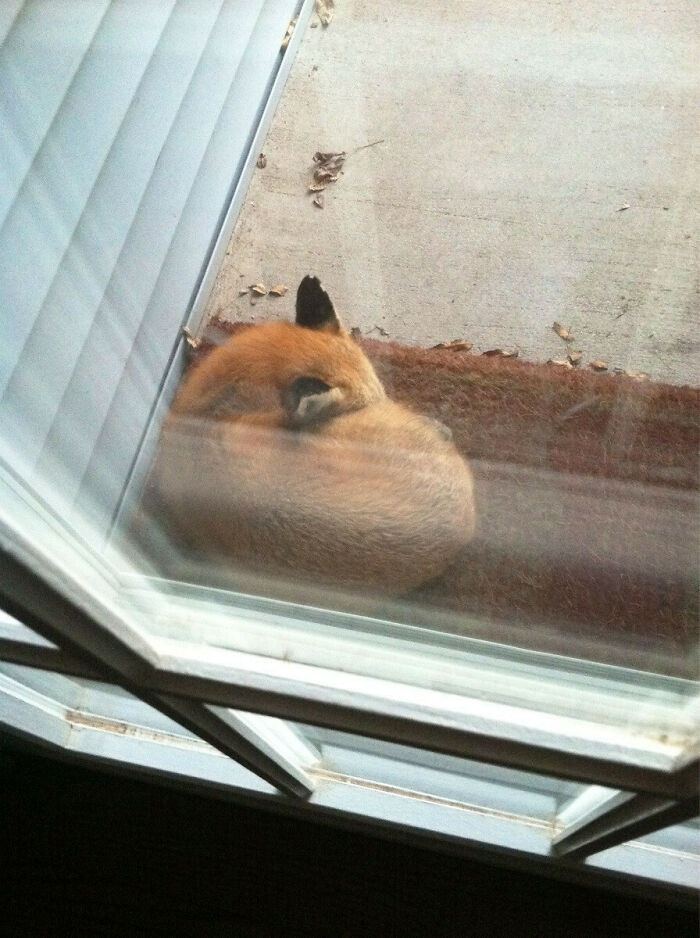 "Little Red Fox Likes To Sleep On My Doormats When It's Cold Outside!"
