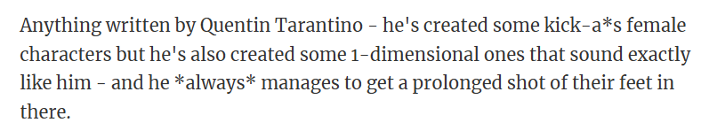 "This reminds me of the woman who wrote about male only writing rooms, she cited an episode of a crime drama where the inspector declared that the k*ller must have redressed the female victim because her "bra and panties don't match". And her underwear was really expensive, at least $20 for her bra alone!"
